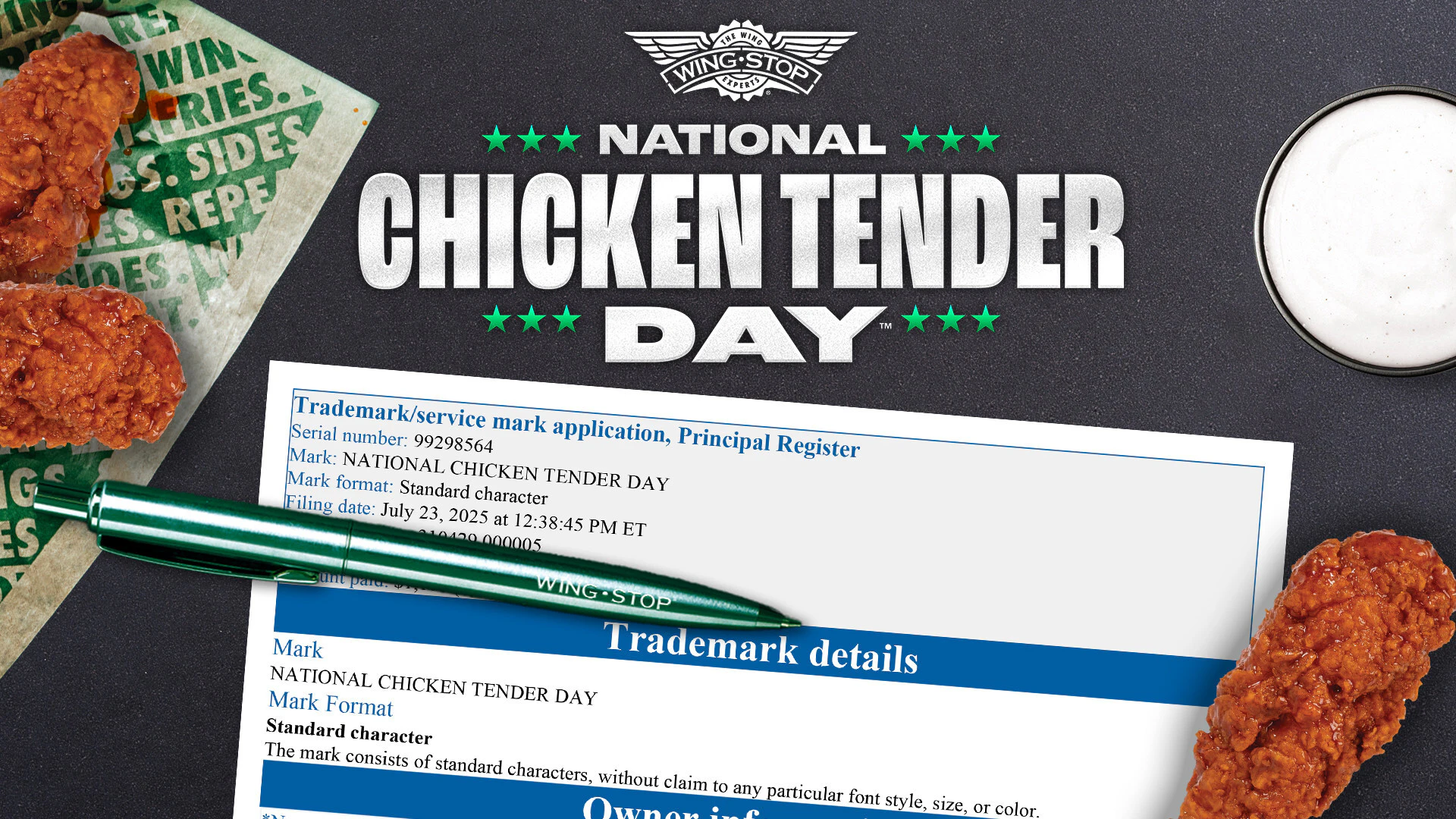 - Wingstop files to register ‘National Chicken Tender Day’The chain seeks to make the moniker for July 27 its own. ... read more
